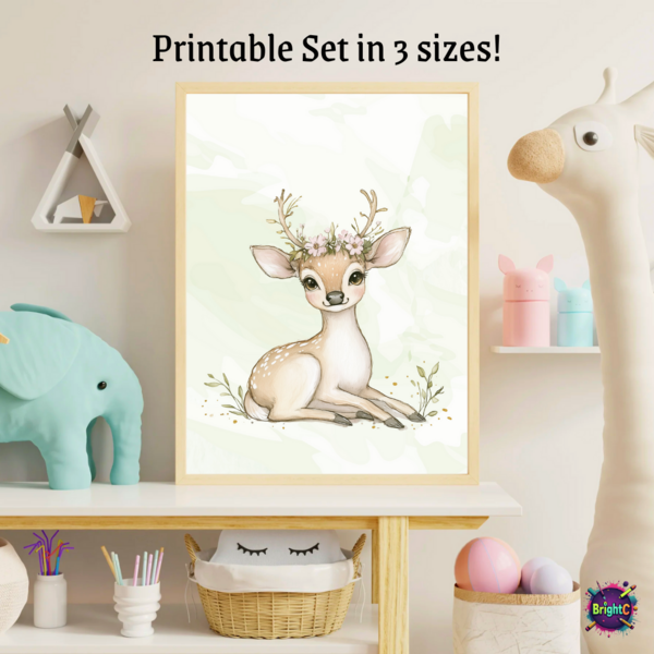 Printable Whimsical Woodland Nursery Print- Set of 3 Watercolor Forest Animals [Hedgehog, Deer & Fox]