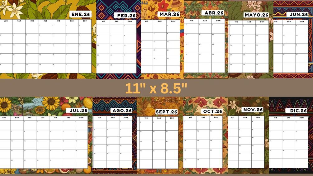 Inspired by the rich textures of Colombian tapestry and the earthy beauty of coffee beans, plants, and artisan motifs, this printable calendar set blends culture with calm. Whether you're drawn to the warmth of woven patterns or the quiet charm of botanical details, each page invites you to slow down and plan with intention.