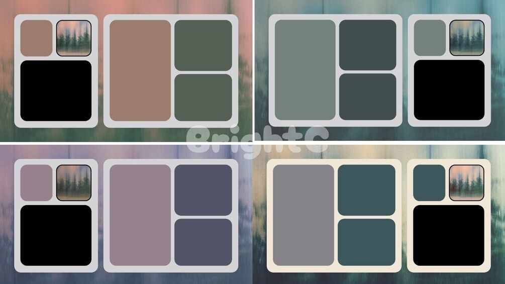 Whether you prefer a grid-style layout or asymmetrical arrangement, each color scheme offers two thoughtfully designed organizational patterns. This means you can experiment with different setups to find what works best for your apps, folders, and desktop shortcuts.
